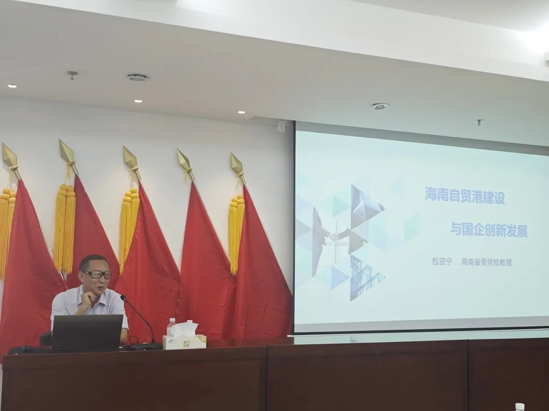 本次培訓邀請原海南省委黨校副校長(cháng)、海南大學(xué)碩士生導師包亞寧教授做專(zhuān)題授課。包教授圍繞“全面準確理解國有企業(yè)在自貿港建設中的功能與作用”“‘封關(guān)’政策制度體系推進(jìn)于社會(huì )生活的機遇與挑戰”“充分認識自貿港建設的走勢,不斷提升企業(yè)的競爭發(fā)展能力”等內容開(kāi)展闡釋?zhuān)⒁攵鄠€(gè)企業(yè)實(shí)例,不僅讓廣大干部職工對自貿港政策的理解更透徹,也為后續謀劃 “十五五”時(shí)期高質(zhì)量發(fā)展工作筑牢了基礎。