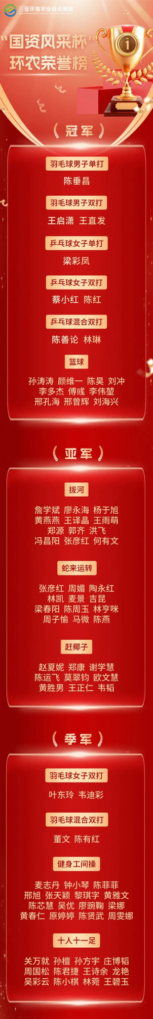 作為深耕環(huán)境和農業(yè)領(lǐng)域的本土國企,三亞環(huán)農集團始終堅守“國企姓黨、環(huán)農為民”的初心使命,高度重視職工身心健康,積極組織各類(lèi)文體活動(dòng),豐富職工業(yè)余生活,營(yíng)造了全民健身的良好氛圍。此次蟬聯(lián)總冠軍,不僅是對集團扎實(shí)推進(jìn)職工身心健康建設的充分認可,更是對集團團結奮進(jìn)、勇?tīng)幰涣鞯钠髽I(yè)文化內核的有力彰顯。