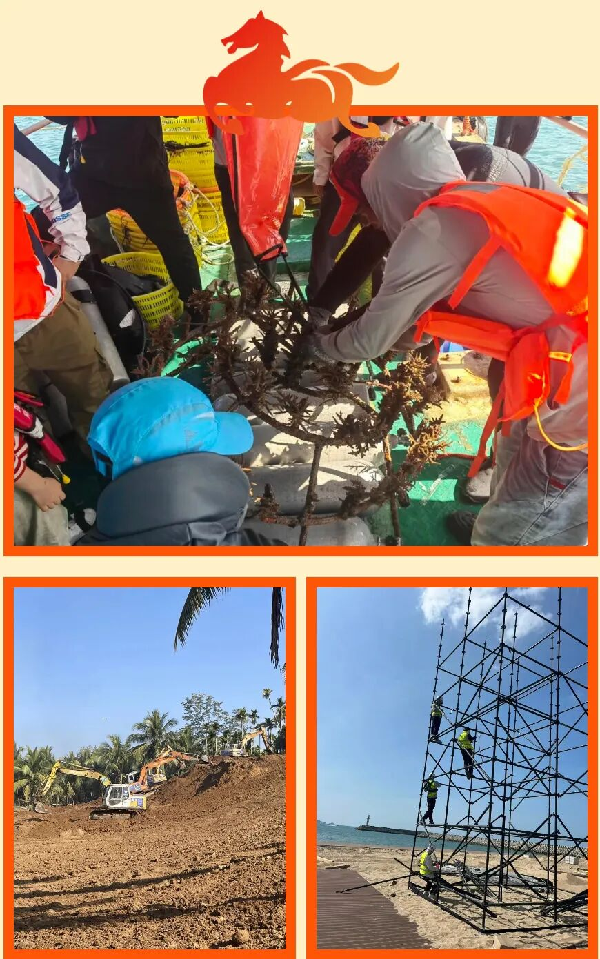 環(huán)通公司承建的亞沙會設(shè)施建設(shè)等重點(diǎn)項(xiàng)目假期不曾停工,施工現(xiàn)場機(jī)器轟鳴、人員干勁十足,呈現(xiàn)出一派熱火朝天的景象。三亞灣近岸珊瑚礁生態(tài)系統(tǒng)修復(fù)項(xiàng)目搶抓天氣窗口期推進(jìn)珊瑚礁移植;第六屆亞洲沙灘運(yùn)動會設(shè)施建設(shè)項(xiàng)目的場館主體建設(shè)、電力保障子項(xiàng)目同步發(fā)力,為賽事舉辦保駕護(hù)航;三亞市藤橋河流域生態(tài)修復(fù)工程全面展開河道整治、生態(tài)修復(fù)作業(yè),打造生態(tài)廊道。新一年,公司將錨定目標(biāo)、加壓奮進(jìn),以優(yōu)質(zhì)工程助力三亞城市建設(shè)與生態(tài)環(huán)境保護(hù)。