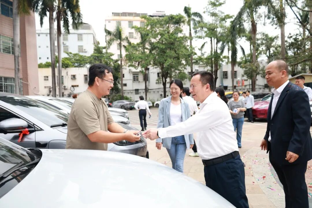儀式現場(chǎng),南新物業(yè)公司與三亞環(huán)投供水有限公司、三亞智水技術(shù)服務(wù)有限公司、三亞市水利水電勘測設計院有限公司、三亞環(huán)境技術(shù)檢測有限公司四家兄弟企業(yè)簽訂車(chē)輛租賃協(xié)議,并正式交付12輛新能源汽車(chē)。車(chē)輛將即刻投入各企業(yè)的生產(chǎn)運營(yíng),用于日常通勤、現場(chǎng)巡檢及物資運輸等場(chǎng)景,提供綠色、高效的出行保障。