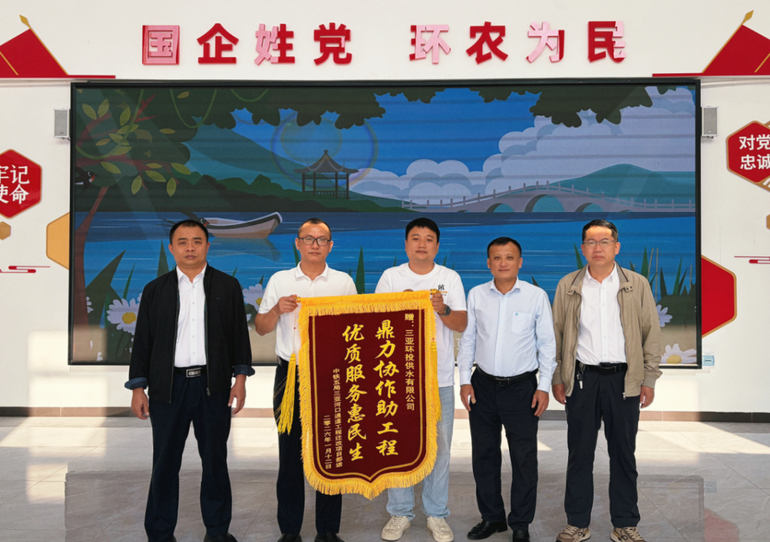 同日,中鐵五局三亞河口通道工程遷改項(xiàng)目部也送來錦旗,感謝環(huán)投供水公司在管道遷改、管網(wǎng)接駁工作中的有力支持與配合,稱贊公司“鼎力協(xié)作助工程 優(yōu)質(zhì)服務(wù)惠民生”。