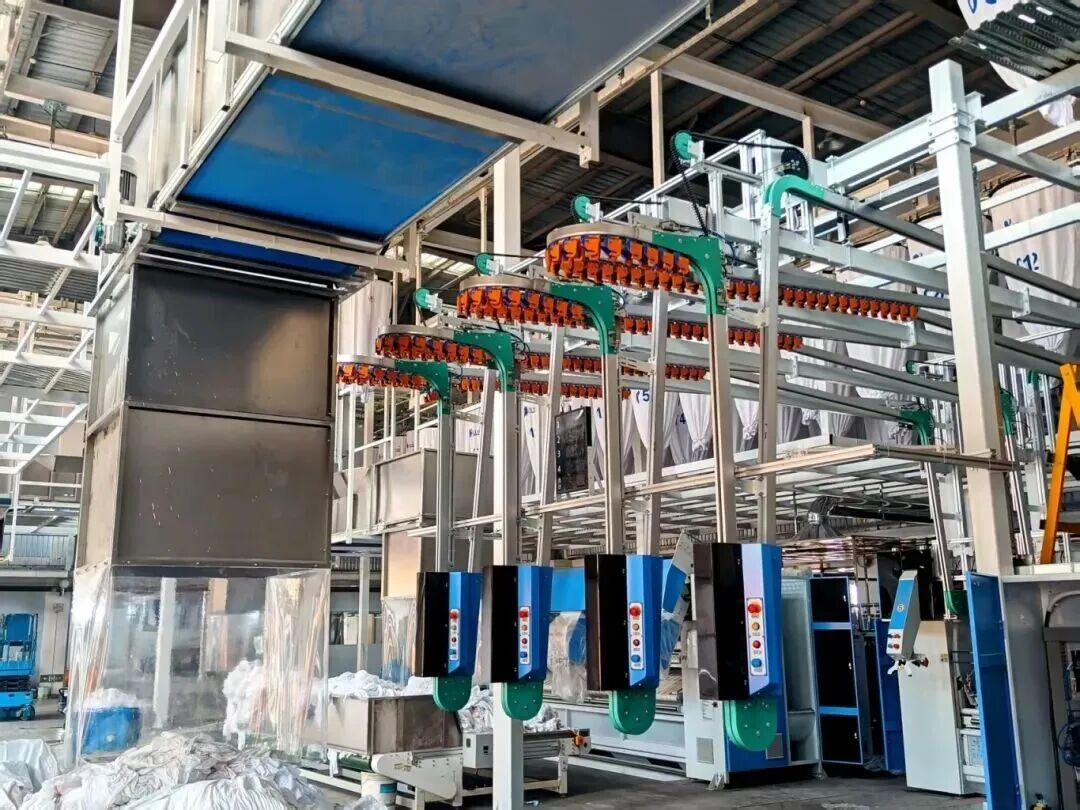 現(xiàn)代化生產廠房內,布草清洗、脫水、烘干全流程自動化處理。